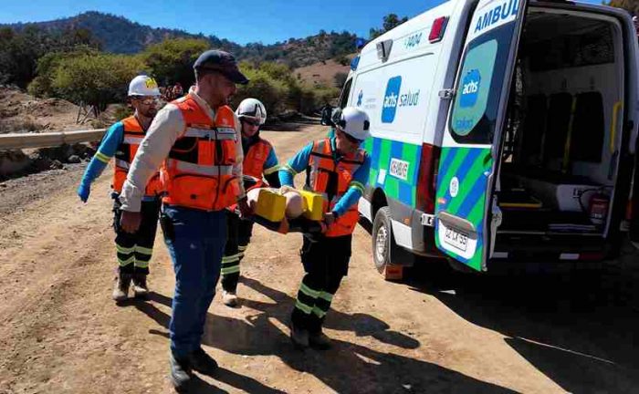 Con un trabajo intersectorial, Codelco División El Teniente realizó un simulacro de accidente vehicular e inmersión en los caminos internos del Embalse Carén, comuna de Alhué, Región Metropolitana. El ejercicio se desarrolló en el sector del km 10 del Camino Interior Valle, donde dos camionetas de empresas colaboradoras simularon una colisión, generando un escenario en el que un vehículo resultó con daños y el segundo con uno de sus ocupantes atrapado, incluyendo su inmersión parcial en la laguna de aguas claras del embalse.