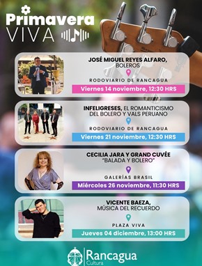 Con “Primavera Viva”, Rancagua se llena de arte, encuentro y esperanza, invitando a sus habitantes a redescubrir los rincones de la ciudad desde la música y la emoción compartida. Una forma de celebrar la vida, la cultura y el talento local, en esta temporada que invita a florecer juntos.