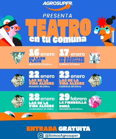 Para conocer la cartelera completa, los horarios y los detalles de cada presentación del ciclo “Teatro en tu comuna”, la información se encuentra disponible en las redes sociales de Agrosuper, @somosagrosuper, donde se irá informando oportunamente sobre cada función.