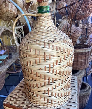 ¿Y las garrafas? Su rostro se transforma casi con tristeza al reconocer que, aunque sabe tejerlas, “ya casi no existen. Está cada día más difícil encontrar una de vidrio verde como las de antiguamente porque ahora todo es plástico. Inclusive la garrafa”.