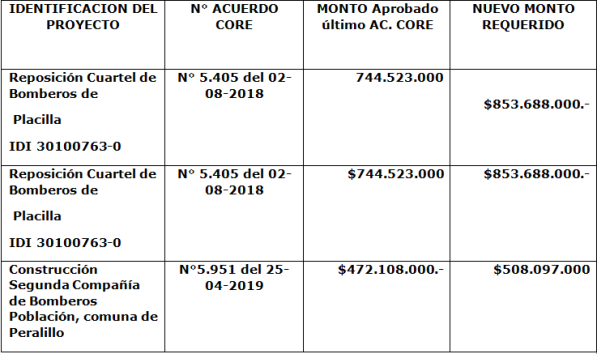 El Consejo Regional de O’Higgins (CORE), en su Sesión Plenaria ordinaria N°672 realizada este miércoles, aprobó por unanimidad aumentar el presupuesto de los siguientes proyectos: