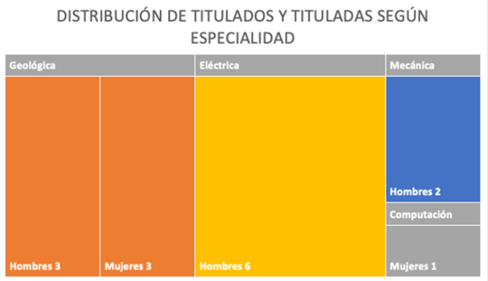 Un hecho que llena de orgullo a la primera cohorte de titulados es que la distribución de género respecto de los estudiantes matriculados en 2017 en la escuela y las titulaciones se mantuvo relativamente constante – pasó de un 24 a un 27% – y que en la especialidad de Ingeniería Civil Geológica corresponde a un 50%. Al respecto, la académica Tania Villaseñor Jorquera comenta: “Es interesante la alta proporción de tituladas en Ingeniería Civil Geológica en relación con las otras especialidades de ingeniería en la universidad. Se ha estudiado que las mujeres en general se interesan por disciplinas en las que obtengan herramientas para resolver problemas ambientales y sociales, actuales y futuros, por ejemplo, temas relacionados a la contaminación, recursos hídricos y medio ambiente en general. Esta sería una razón por la que especialidades relacionadas a las geociencias atraen a mujeres ya que trata temas que se relacionan con problemáticas territoriales y sus comunidades. Creo que las primeras tituladas de la carrera serán referentes para las nuevas generaciones de la especialidad de Ingeniería Civil Geológica en particular y las estudiantes de todas las ingenierías en general”.